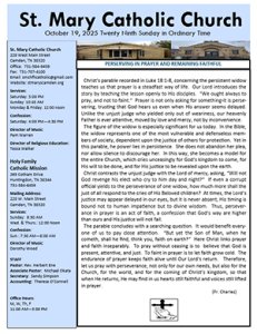 The parish bulletin for October 19, 2025 is now available from the bulletin download page.